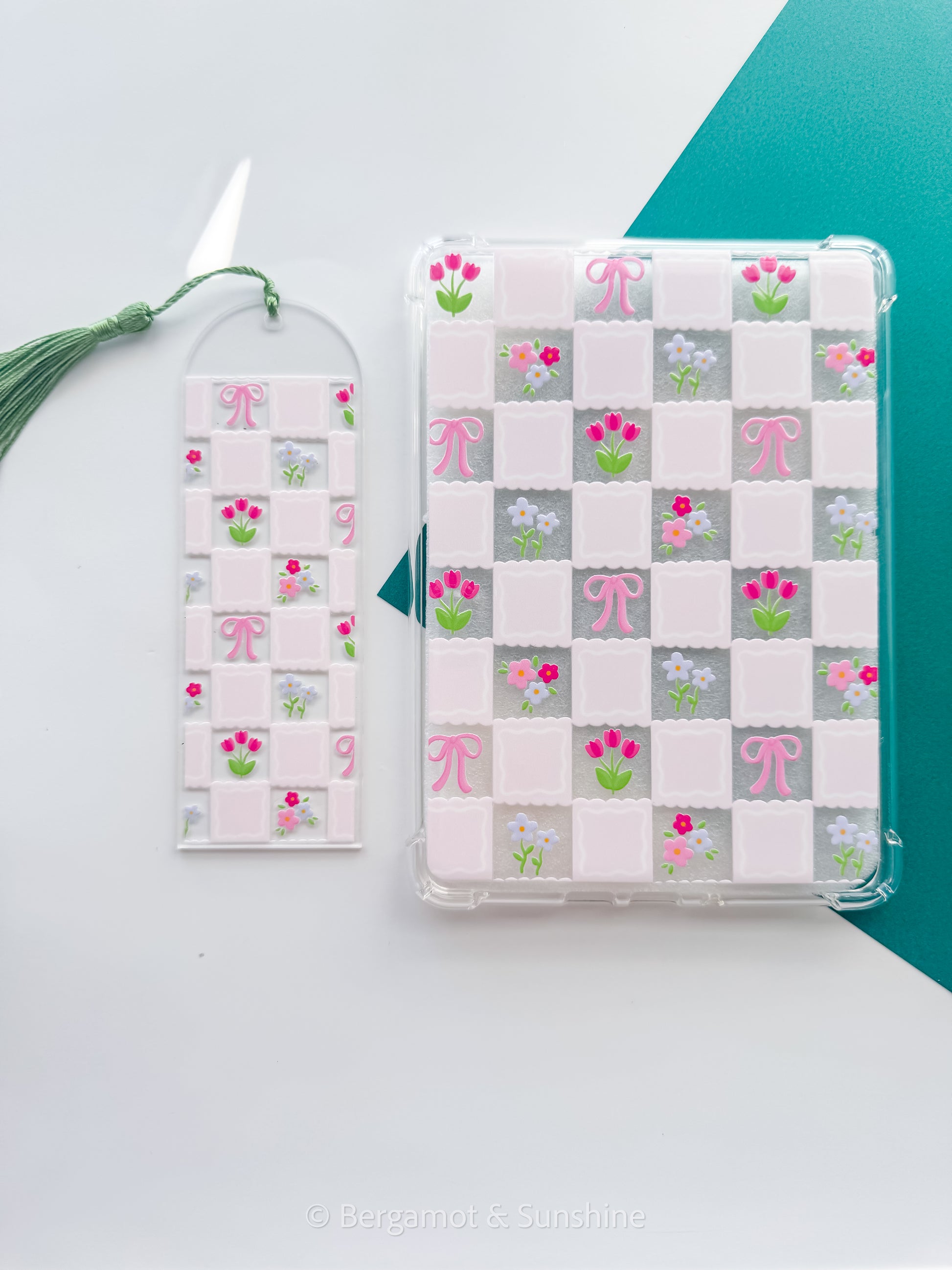 Checkered Spring Flowers E Reader Case