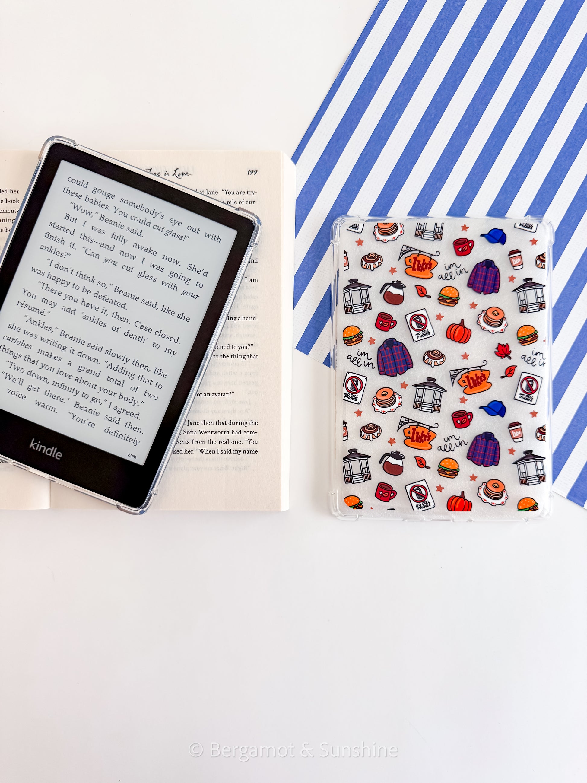 I bought my case last year around Christmas, and I read for hours every day every day. The case has held up beautifully. Thereโs no crazy yellowing in the clear part of the case which is my biggest pet peeve with any clear cases. And my decals all still look great almost a year later. I do keep my Kindle in a sleeve when itโs in my purse, so that probably does help protect the decals, but overall with the amount of use she has held up wonderfully.